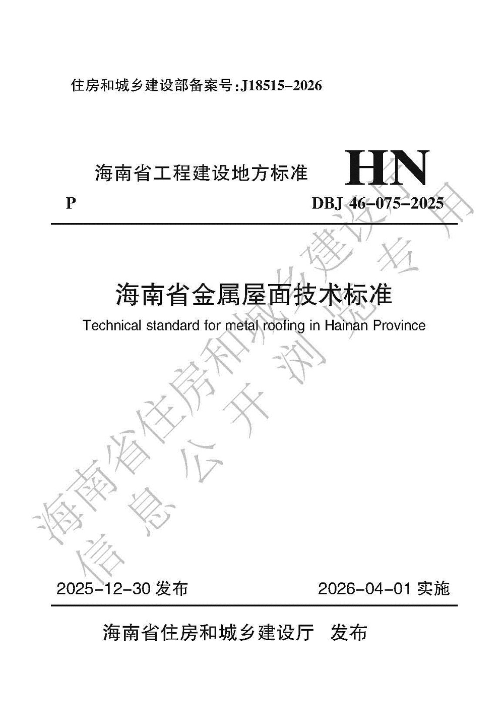 海南省三面环海,常年处于高氯离子浓度、高温高湿及强台风频繁侵袭的复杂气候环境中,沿用常规金属屋面标准已难以满足当地严苛的自然条件。此次发布的新标准,正是针对海南特殊的地理与气候特征量身打造,成为该地区首个具有针对性的金属屋面技术规范。