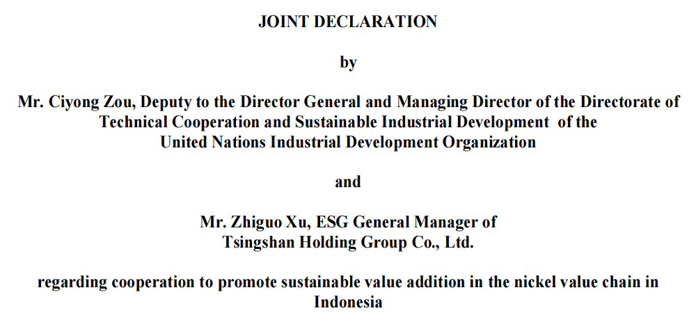 签订《镍产业链可持续发展联合宣言》