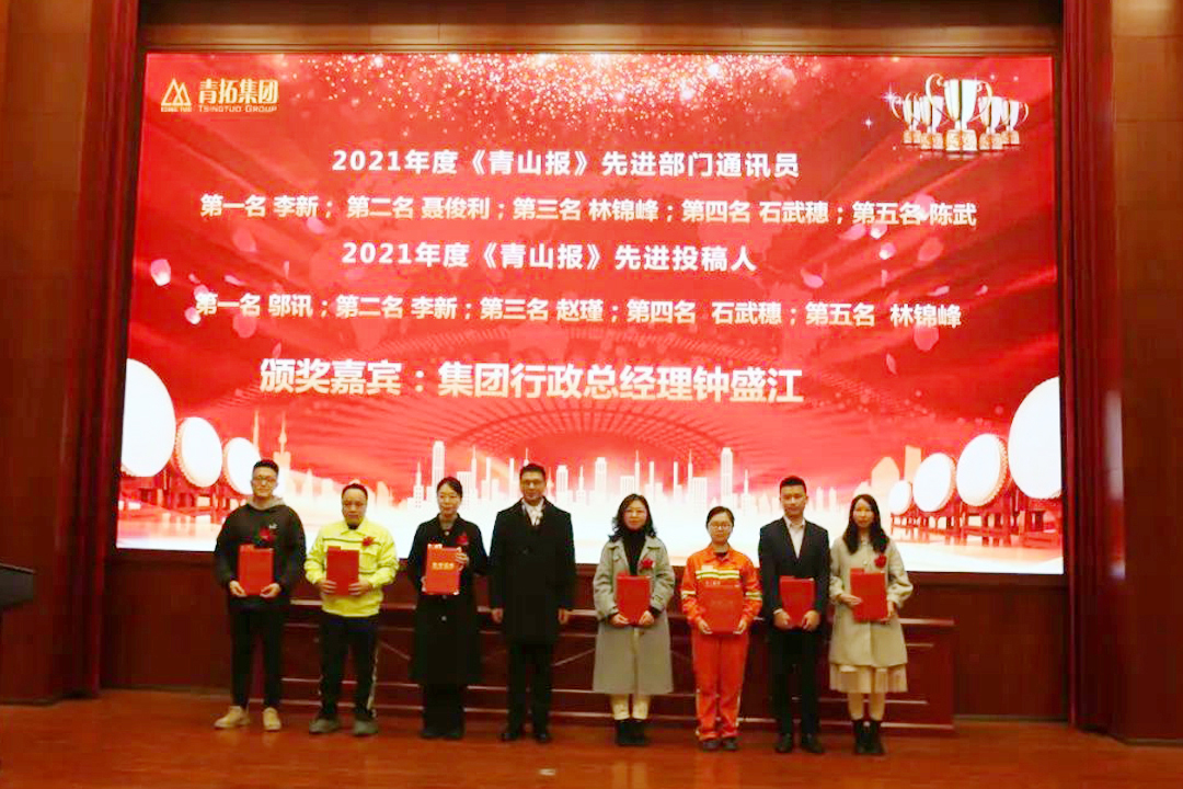陈庆荣宣读了2021年度先进集体、个人、先进部门通讯员和投稿人表彰文件。各部门部长分别为获奖者颁发了荣誉证书和奖金,并合影留念。