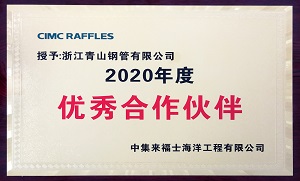 色情导航 钢管荣获中集来福士“2020年度优秀合作伙伴”